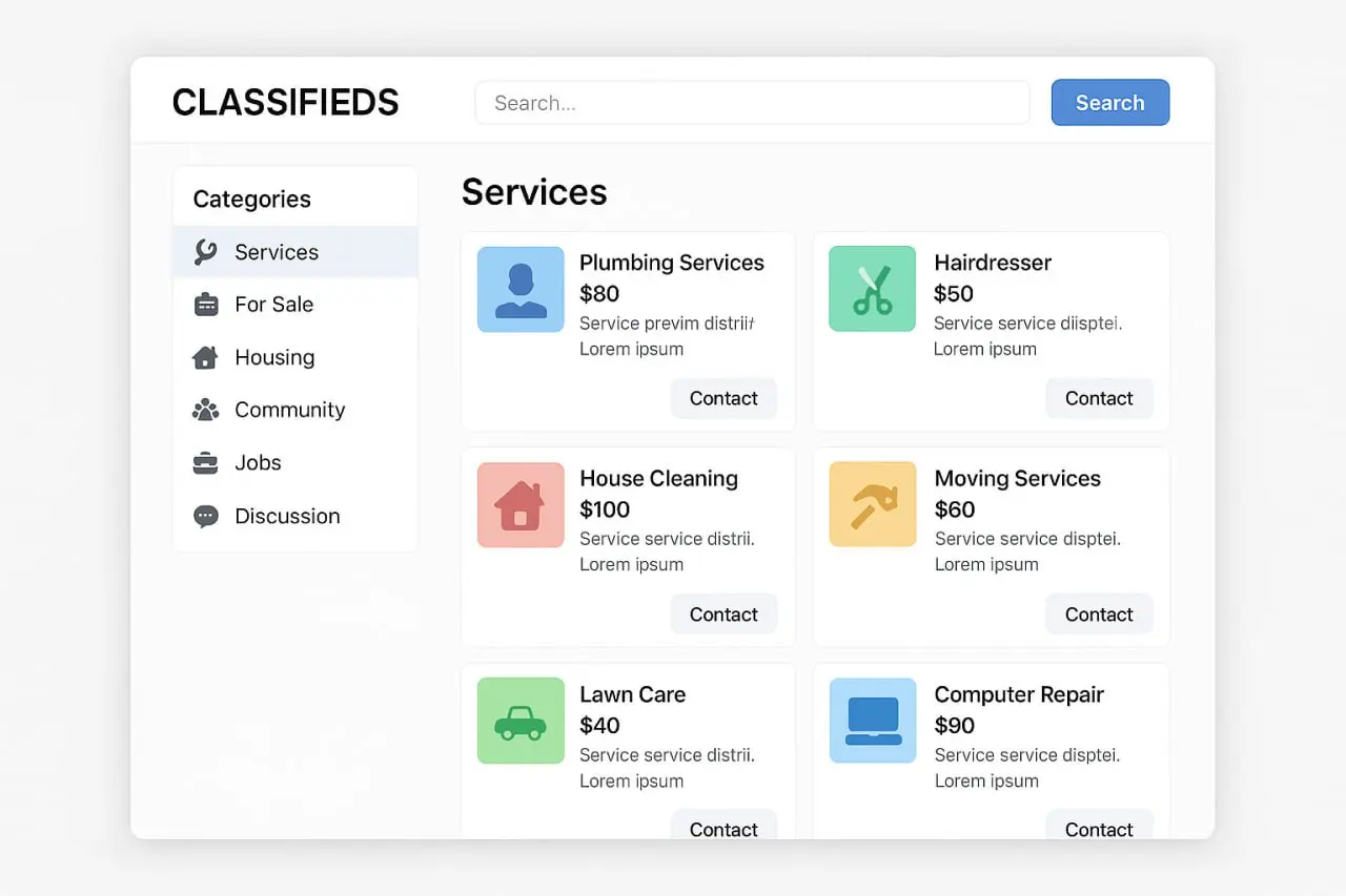 Поиск по видам услуг, ценам, документам, локациям. Позволяет клиентам быстрее находить нужную информацию, а бизнесу — сокращать путь пользователя к заявке или бронированию.
